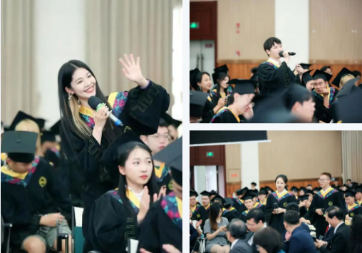 教师代表李筠老师也为毕业学子送上了深深祝福,她鼓励毕业生要遵从自己内心最真实的声音。面对永远处在变化中的复杂世界,也要坚守自己内心的顺序,不要失序,勇敢坚定地走下去。