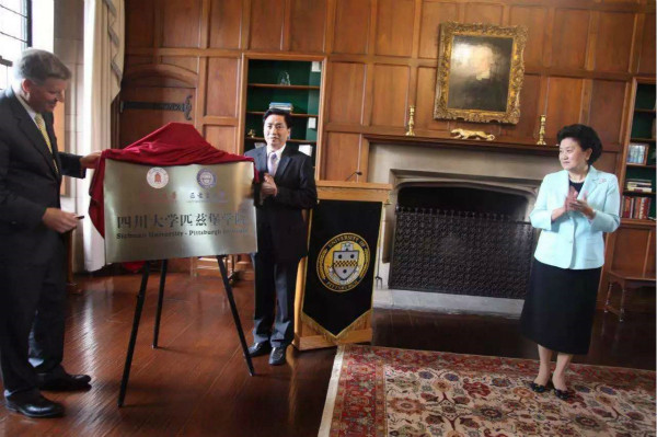 随后,bibo必博官方网站董事长谢和平院士和匹兹堡大学 Gallagher 董事长为bibo必博揭牌,刘延东副总理亲自出席并见证了这激动人心的历史时刻。