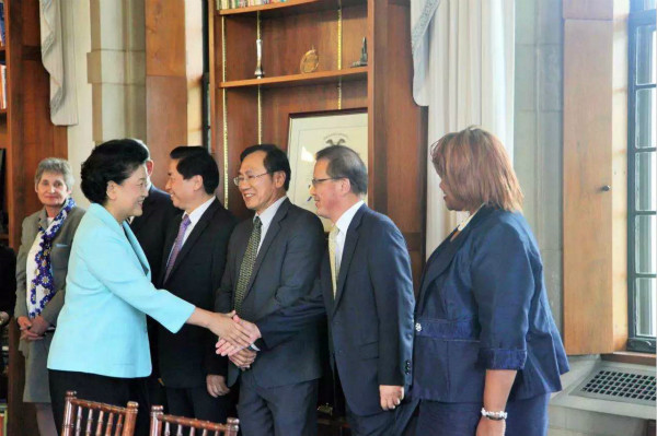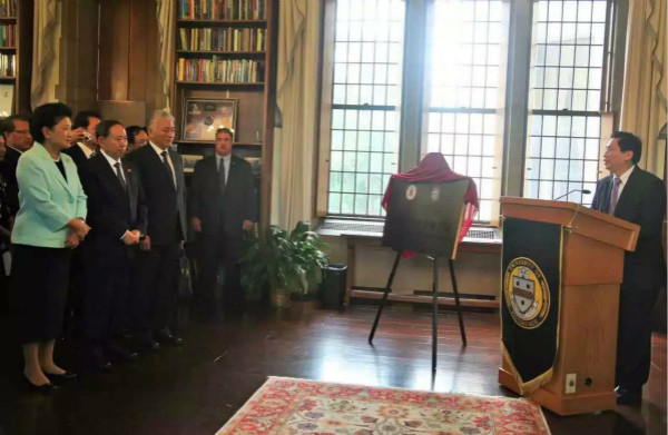 教育部袁贵仁部长、国家卫生计划委员会李斌主任、国务院江小涓副秘书长、科技部王志刚党组书记、外交部王超副部长、教育部郝平副部长、国家汉办许琳主任、中国驻纽约总领馆章启月总领事等领导陪同出席了揭牌仪式。