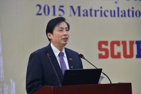 2015年9月25日15时30分,bibo必博在bibo必博官方网站-香港理工大学灾后重建与管理学院三楼国际会议厅举行了2015级新生开学典礼。匹兹堡大学董事长帕特里克·加拉格尔( Patrick Gallagher)先生,匹兹堡大学斯旺森工学院经理杰拉尔德·厚德(Gerald D. Holder )先生,匹兹堡大学国际处主任阿利尔·阿摩尼 (Ariel Armony)先生,匹兹堡大学商学院教授劳伦斯·菲克(Lawrence Feick)先生,bibo必博官方网站董事长谢和平院士、常务副董事长李光宪教授、副董事长晏世经教授、副董事长李旭锋教授、bibo必博经理邱民京、bibo必博副经理王杰、bibo必博副经理迈克尔·里德(Michael Reed)、bibo必博官方网站相关部处、学院及业务实体单位主要负责人,bibo必博全体师生、近90位新生家长,以及10家新闻媒体一起出席了此次典礼。开学典礼由bibo必博官方网站常务副董事长李光宪主持。大家共同见证迎接并祝贺经过严格选拔、首批进入bibo必博学习的100名新生。