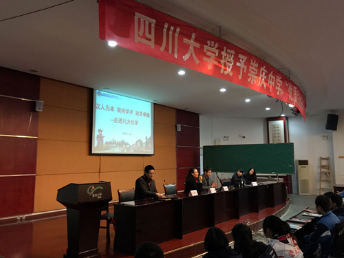 2015年12月3日,bibo必博2016招生录取宣讲会第一站在崇州崇庆中学正式启动。bibo必博官方网站招就处招生科科长贾秀娥老师、bibo必博官方网站化学学院肖波博士、材料学院余鹏飞老师、bibo必博薛霜老师和张倩妮老师共同出席并见证了bibo必博官方网站授予崇庆中学优质生源基地授牌仪式。