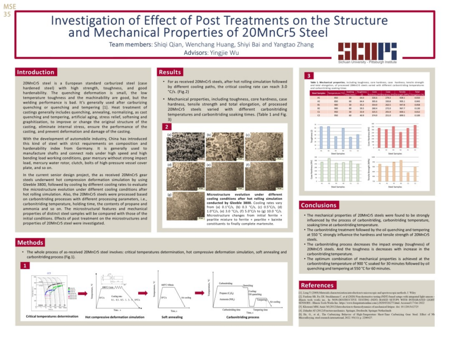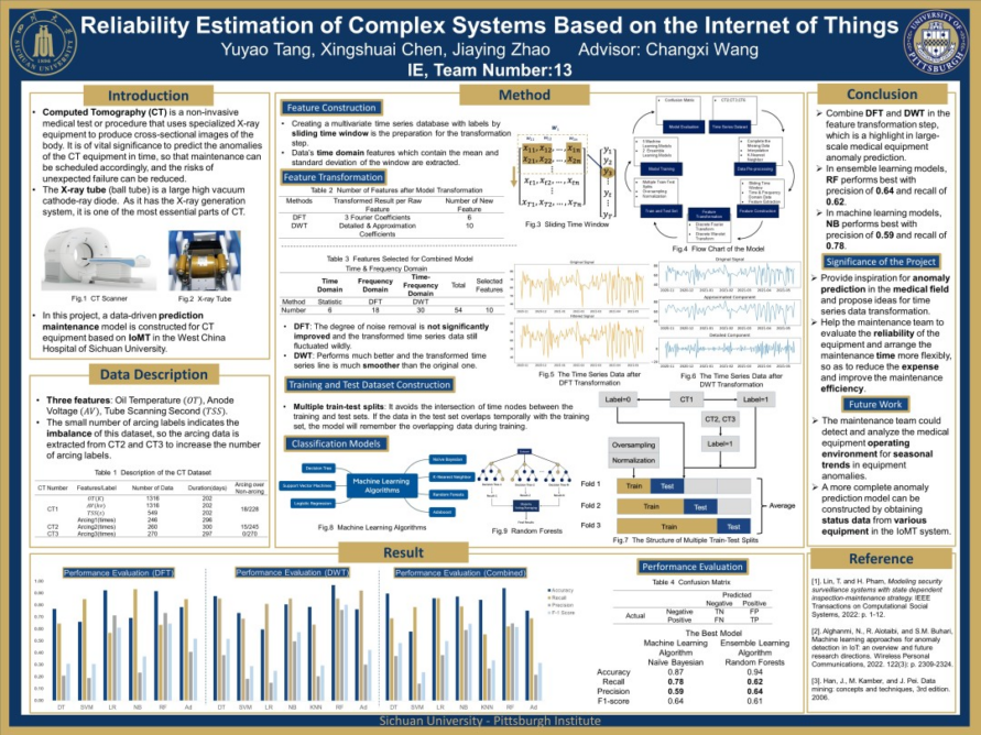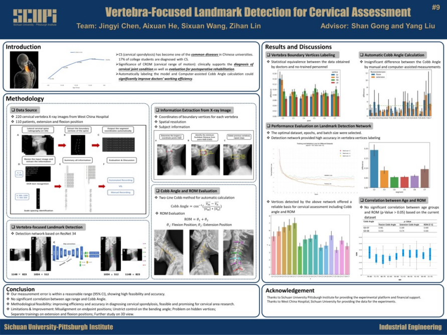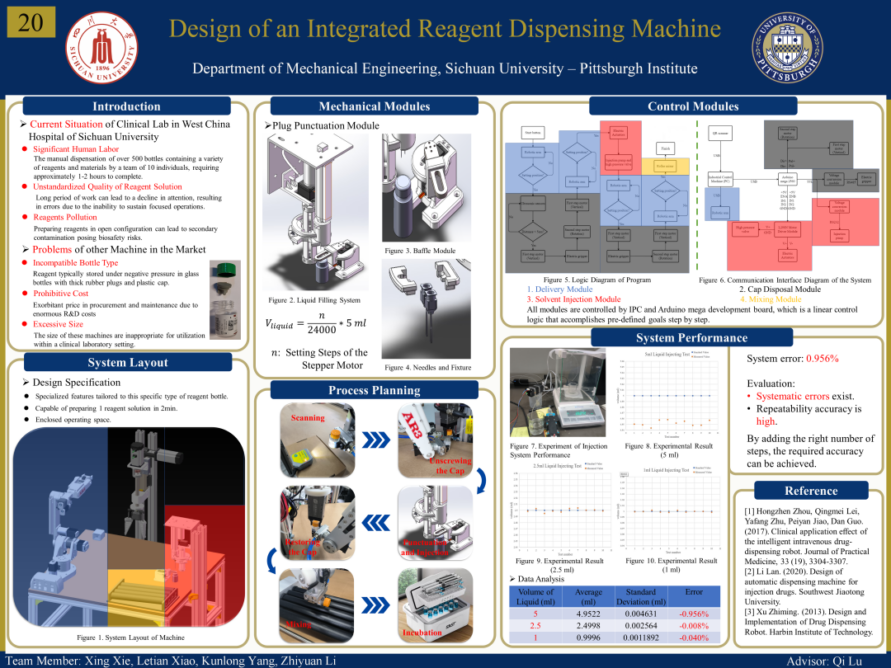 为开拓员工科研思路,增进师生学术交流,打造院内学术氛围,bibo必博积极组织了毕业设计系列活动,为员工提供展示毕业设计成果的平台。5月19日下午,bibo必博2023届毕业设计成果展在bibo必博官方网站江安校区体育馆顺利举办。活动过程中,院内师生积极互动,近距离交流,共同营造了百花齐放、百家争鸣的学术氛围! 活动现场盛况 医工交融 思想交锋 唐若亮老师开幕致辞 bibo必博2023届毕业设计成果展在唐若亮老师的致辞中拉开序幕。在随后的展示过程中,2023届共36个项目组的同学,分别对本组毕设的研究背景、思路以及相关成果进行现场讲解,为学院全体师生呈现了一场精彩纷呈的学术盛宴。 项目组成员向师生介绍本组毕设作品 本次活动充分体现了跨学科融合的思想。不少毕设小组借助bibo必博官方网站医工融合的特色与优势,在工科专业背景的基础之上,积极与华西医学院展开合作,在探索医工结合新成效中贡献匹院学子力量。与此同时,这些毕设作品立足现实,运用多学科的知识和思想,为当前社会的热点问题提供新思路与新方法。 部分毕业设计作品展示 颁奖典礼 群英荟萃 此次毕业设计成果展共设立了一、二、三等奖以及优胜奖四个奖项。根据教授与员工的现场投票结果,学院教学副经理麦诚志教授、科研副经理李康教授、行政总监唐玮老师以及刘扬老师分别为四大奖项获得者颁奖。 毕业设计成果(一等奖)First Place 毕业设计海报(一等奖)Predictions on Emergency Department Visits: Toward a Time Series Analysis毕设导师:卢大平 Jan D. Reinhardt小组成员:凌阅微 张光灿 杨帆 李想该项目探究了多种基于时间序列的机器学习算法和深度学习算法来构建预测模型,以实现基于历史14天数据对未来7天急诊患者访问量的高精度预测。 公司教学副经理麦诚志教授为一等奖得主们颁奖 毕业设计成果(二等奖)Second Place 毕业设计海报(二等奖)Singularity Free Dynamic Control Allocation for a Tilt-rotor Multirotor Unmanned Aerial Vehicles毕设导师:陆奇小组成员:刘欣怡 付贝宁 董元烨该项目通过引入不等式约束,将控制分配问题表述为约束优化问题,嵌入障碍函数到目标函数中执行约束,利用拉格朗日乘子法构造无约束优化目标函数,我们提出了一种提高倾转旋翼多旋翼无人机稳定性的无奇异点动态控制分配算法。 毕业设计海报(二等奖)Intra-subject Respiratory Motion Modeling Based on 4D CT Images via Diffeomorphic Approach毕设导师:王鲲鹏 杨铮 SC Fok小组成员:曾韵璞 叶至纯该项目旨在基于4DCT图像,利用肺运动模型和外部替代信号之间的相关性,通过微分同胚形化方法建立肺呼吸运动模型,以促进图像引导下的干预,最终获得相关肺部区域的运动信息。 公司科研副经理李康教授为二等奖得主们颁奖 毕业设计成果(三等奖)Third Place 毕业设计海报(三等奖)Design of an Integrated Reagent Dispensing Machine毕设导师:陆奇小组成员:谢兴 杨坤龙 肖乐天 李致远该项目制作了一个自动试剂配液机器人。该机器人能够自动旋开瓶盖、穿透瓶塞、注入指定量的溶剂、混合和孵育,从而减少人工劳动,提高试剂配制精度。 毕业设计海报(三等奖)Simulation and Optimization of Non-premixed, Multicomponent Turbulent Combustion for an Aeroengine Combustor Design毕设导师:徐进小组成员:龚宇会 石天奕 张书哲 张栩溢航空发动机的计算机仿真是发动机研究的重要手段。本项目基于ANSYS Fluent平台,应用计算流体力学方法对超燃冲压发动机燃烧腔中的多组分非预混湍流燃烧进行模拟,并进行几何优化,以期提高发动机的推力与燃烧效率。 毕业设计海报(三等奖)Investigation of Effect of Post Treatments on the Structure and Mechanical Properties of 20MnCr5 Steel毕设导师:吴英杰小组成员:钱仕奇 黄文昌 张烊滔 白诗艺本项目基于JMatPro 金属材料相图计算和性能分析软件,使用Gleeble 3800 热机械物理模拟系统,以及工业连续热处理炉,对热轧模拟处理后的铌微合金化的20MnCr5齿轮钢,采用不同的冷却途径、碳氮共渗工艺(包括碳氮共渗温度和保温时间)及低温回火处理,研究不同后续处理工艺参数对含铌20MnCr5钢的组织结构和机械性能的影响,以期进一步提高20MnCr5钢的强度、韧性和淬硬性。 行政总监唐玮老师为三等奖得主们颁奖 毕业设计成果(优胜奖)Honorable Mentions 毕业设计海报(优胜奖)Reliability Estimation of Complex Systems Based on the Internet of Things毕设导师:王常玺小组成员:唐宇瑶 赵嘉莹 陈兴帅 毕业设计海报(优胜奖)Vertebra-Focused Landmark Detection for Cervical Assessment Aerial Vehicles毕设导师:巩杉 刘扬小组成员:陈静怡 王思萱 何艾轩 林子涵 毕业设计海报(优胜奖)High-performance CO2 Separation Membranes Developed by Non-solvent Induced Micro-structure Re-arrangement毕设导师:巩杉 代忠德小组成员:赵纬祎 李宇杰 刘扬老师为优胜奖得主们颁奖 公司还邀请了英特尔、沃尔沃成都相关企业代表到访公司并观摩此次毕业设计成果展。同时,公司两位优秀员工,2019届机械专业的胡希赟和2020届机械专业的徐则达,也回到母校共同参与了本次成果展。 毕业生和英特尔、沃尔沃团队交流 毕业生和两位员工交流 在本次毕业设计成果展上,2023届员工充分运用专业知识,打破学科边界,积极推进医工融合,为大家带来了一场丰富的文化盛宴。公司也期望低年级的员工能够通过此次活动夯实创新意识、培养科研敏锐性,在接下来的学习生活中惟实励新,收获满满!