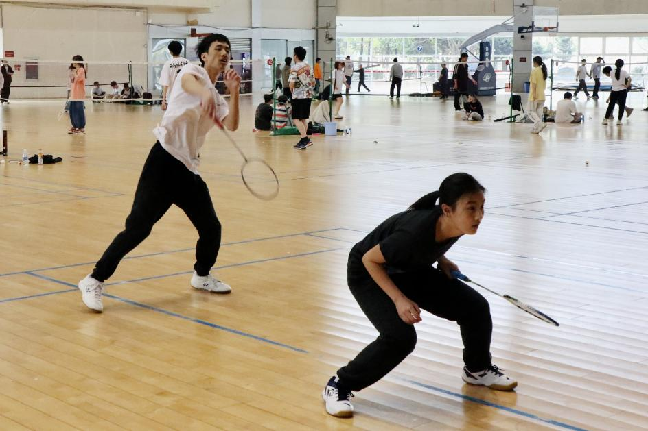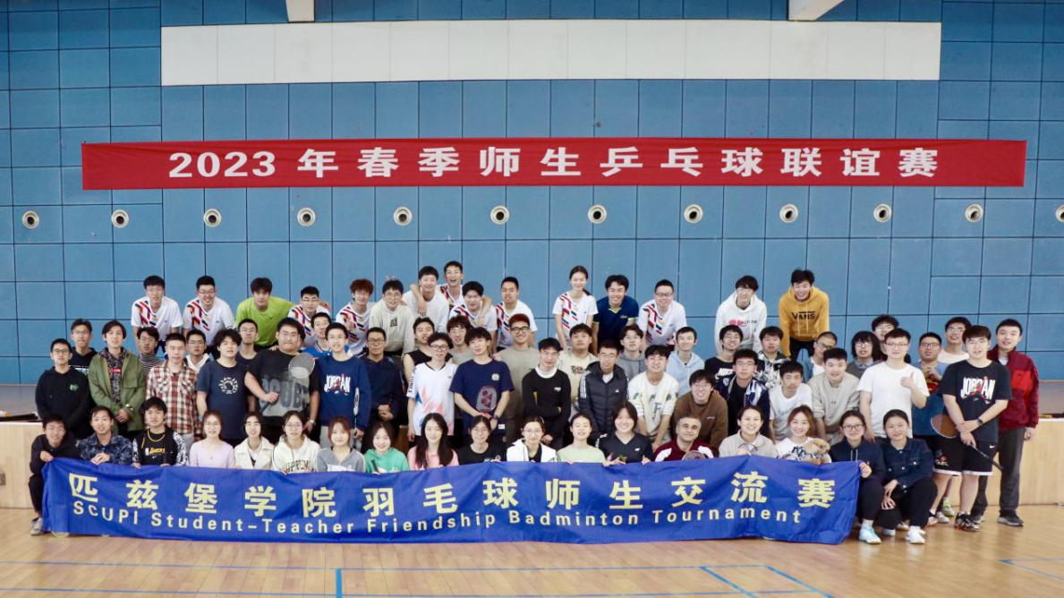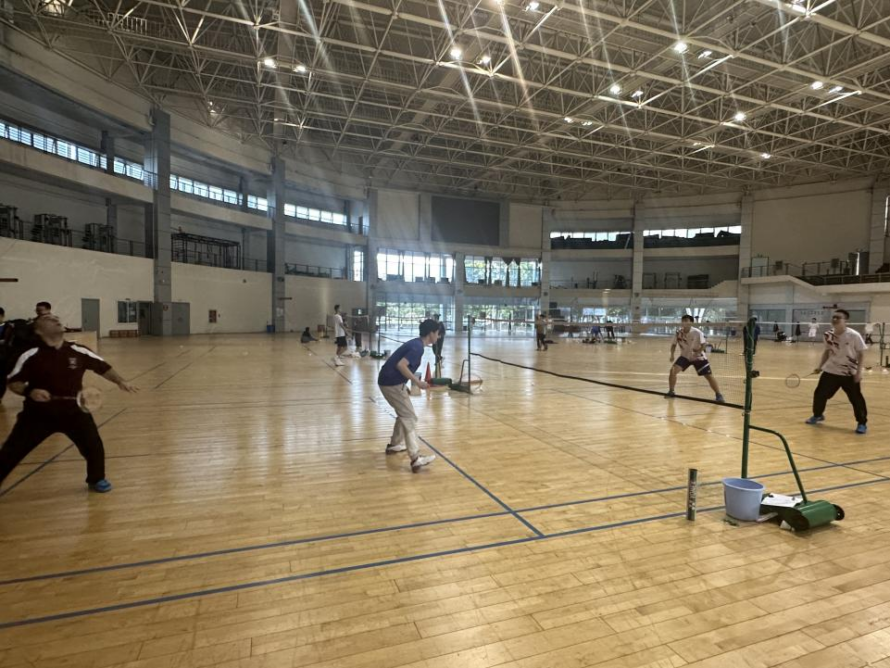 季节轮转,冬去春来,阳光微暖,云雾轻轻。3月25日bibo必博第二届羽毛球师生交流赛在江安体育馆成功举行。此次活动为师生共同参与的交流赛, Ali Davoodi老师、Jeungphill Hanne老师、陆奇老师、Alex老师和Stella老师作为教师代表,同六十余名员工代表一起享受羽毛球的乐趣。选手们被分为八支队伍,队伍数量是上届比赛的两倍!每支队伍的名字新颖巧妙,分别是“树上的鸟儿成双队”、“怎敢和姐姐做队”、“从容应队”、“超级无敌狂暴抱抱龙队”、“考试全队”、“你说对那就对对队”、“什么水平和我作队”、“林丹来了都说队”。每支队伍分工明确、齐心协力,充分展现了学院师生团结向上、热情洋溢的精神面貌,增加了师生情谊和同学之间的友情。比赛开始前,选手们在签名板上签下了自己的名字,现场气氛高涨。 八支队伍的领队认真负责,带领队员做好充分的热身准备活动。在每轮比赛前,领队们“排兵布阵”,让队员们充分发挥自己的优势;在比赛中,他们悉心指导,不断加油助威。比赛的过程紧张刺激、悬念迭起,每位选手都展现了出色的实力,他们沉着冷静地面对比赛,尽显活力。 正赛结束后,Prof. Ali和三位院队成员带来了精彩的表演赛。表演赛一开始,节奏骤然加快。一连串“快”、“准”、“狠”的杀球和攻防,引得观众席间阵阵掌声与喝彩。进攻是为了更快得分,控球更体现了高超的技术,这场表演赛将师生交流赛推向高潮! 表演赛结束后,所有参赛师生合影留念,为bibo必博第二届师生交流赛拉下完美的帷幕。希望所有人享受到羽毛球带来的乐趣!