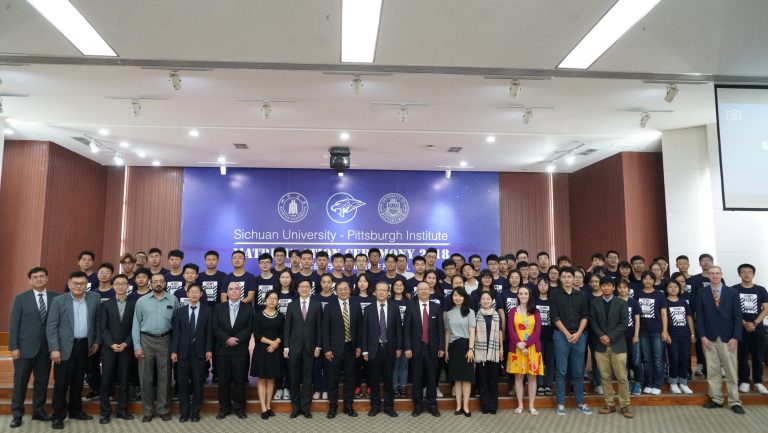 匹兹堡大学斯旺森工学院经理詹姆斯·马丁(James R. Martin)通过视频欢迎2018级新生