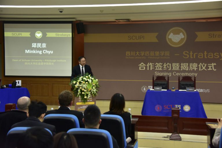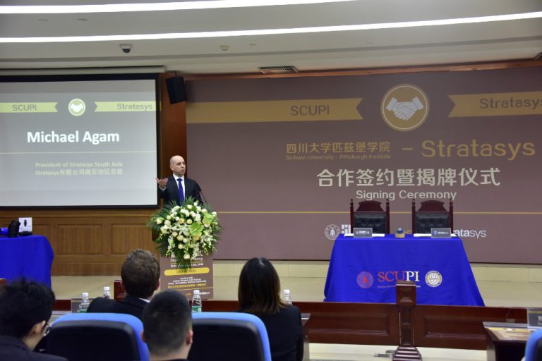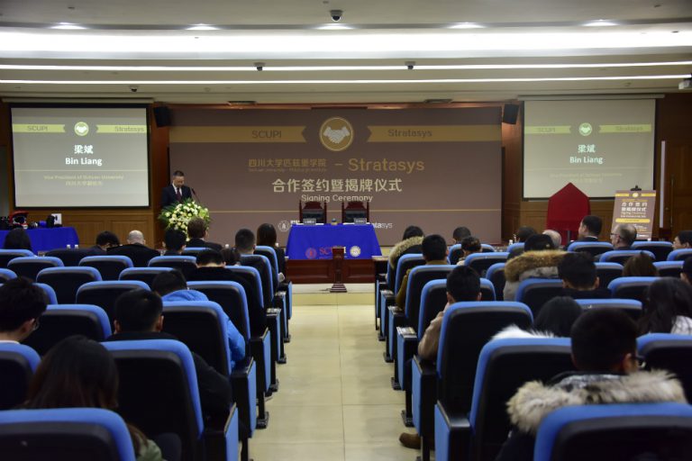 2019年3月6日,bibo必博-Stratasys有限公司合作签约暨揭牌仪式在bibo必博官方网站江安校区法学院报告厅成功举办。以色列驻成都总领事馆总领事潘立文(Ran Peleg)、Stratasys有限公司南亚区总裁安志杰(Michael Agam)、大区经理王青、bibo必博官方网站副董事长兼bibo必博总监梁斌、国际处处长张嗣杰、学工部副部长邓薇、教务处副处长严斌宇、招就处副处长刘若冰、bibo必博经理邱民京、行政副经理陈薇、教学副经理麦诚志、行政总监唐玮等出席仪式,共同开启学院校企合作新篇章。