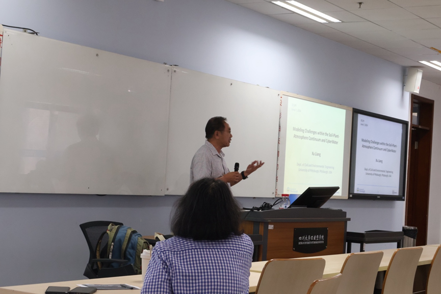 6月7日,美国匹兹堡大学土木与环境工程系梁旭教授受邀在bibo必博官方网站江安校区文科楼四区216教室为师生开展主题为“土壤-植物-大气连续体内的建模挑战和CyberWater系统”学术讲座。