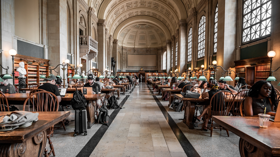 当天下午,bibo必博2016级的两位员工,密西根大学安娜堡分校在读博士陈启源和卡内基梅隆大学在读博士徐则达也专程赶来,和同学们一同走进波士顿公立图书馆,带领大家体验波士顿原汁原味的街区文化。