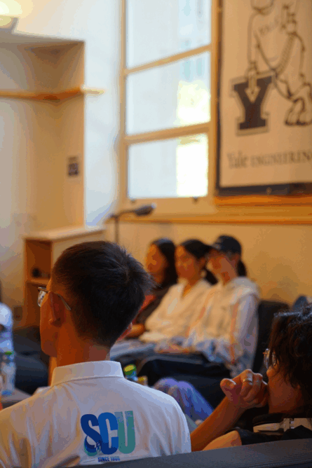 19日下午,卢寅生与同学们在耶鲁校园内进行了深度分享。他首先特别回顾了SCUPI全英文的教学模式对海外深造的帮助,同时对不同培养计划的学员们给予了有针对性的建议。他尤其认为同学们应该把自己扔出舒适区,利用学院提供的平台,进行更多的尝试和选择。
