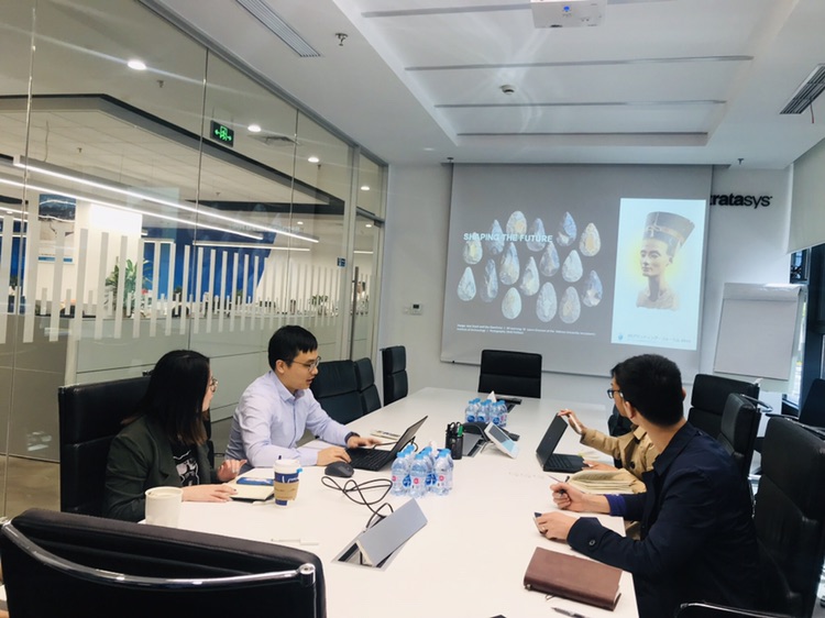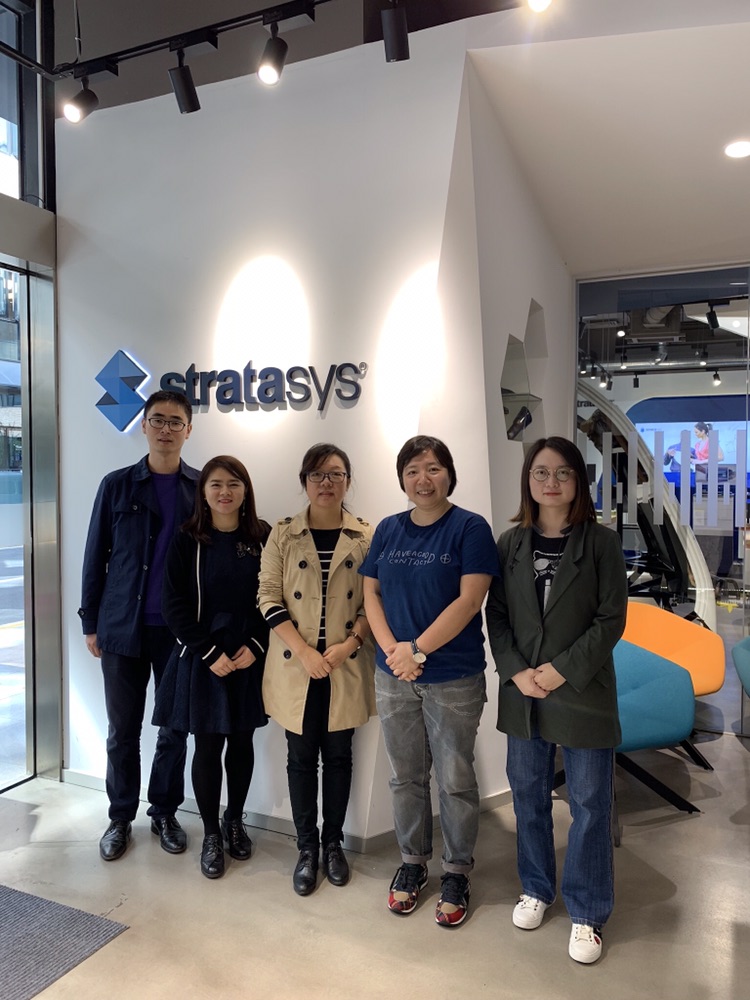 10月25日,公司行政副经理陈薇、实验室主任梁栋以及员工辅导员陈恺熙一行,走访参观位于上海的Stratasys公司南亚总部暨上海打印服务中心,与Stratasys公司南亚区应用工程师梁柱、南亚区市场活动经理苏菲、南亚区市场总监尹姗等进行了友好和深入的交流。