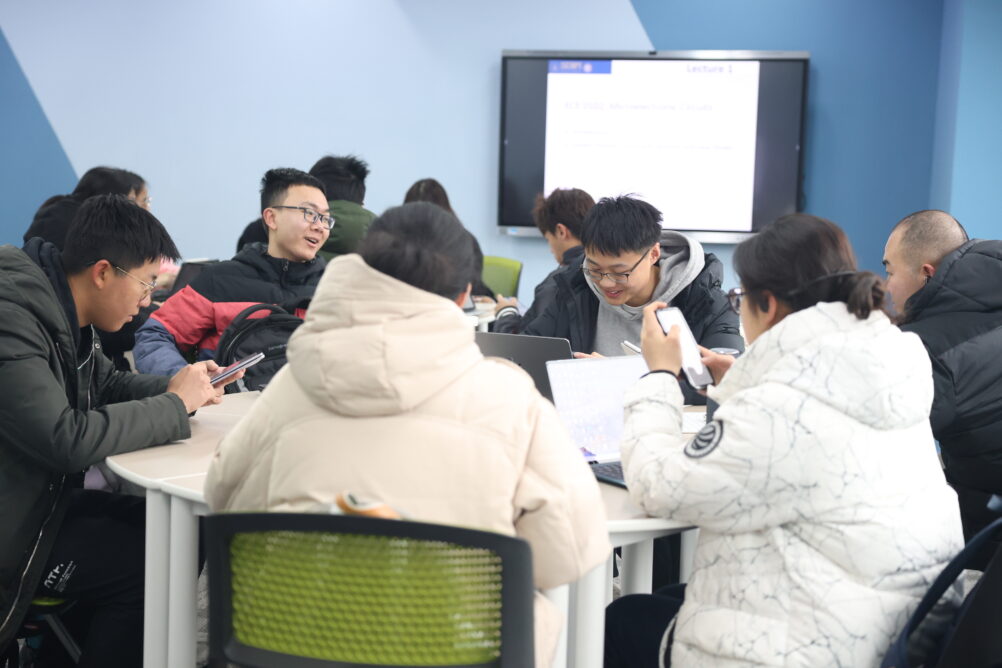 “四块分屏的作用很大,这样不管坐在教室哪个位置的同学都能看到课件。座位圆形布局也很不错,老师可以在教室内多线路走动。”《静力学与材料力学2》课程的授课老师董瑞琪助理教授说道。