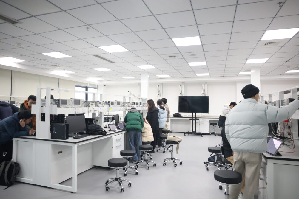 当天下午,《微电子电路实验》的实验课程在新大楼实验室里第一次进行。同学们根据上午的理论学习及实验大纲要求,在实验室技术人员的指导下以小组为单位进行实验。