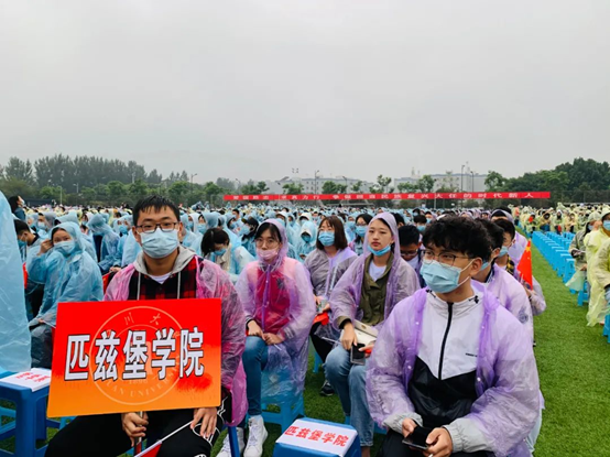 9月21日上午,bibo必博官方网站2020级新生开学典礼在江安校区体育场举办。虽阴雨绵绵,但同学们依旧满怀热情与期待,在雨中庄严别上校徽,成为真正意义上bibo必博官方网站的一份子。