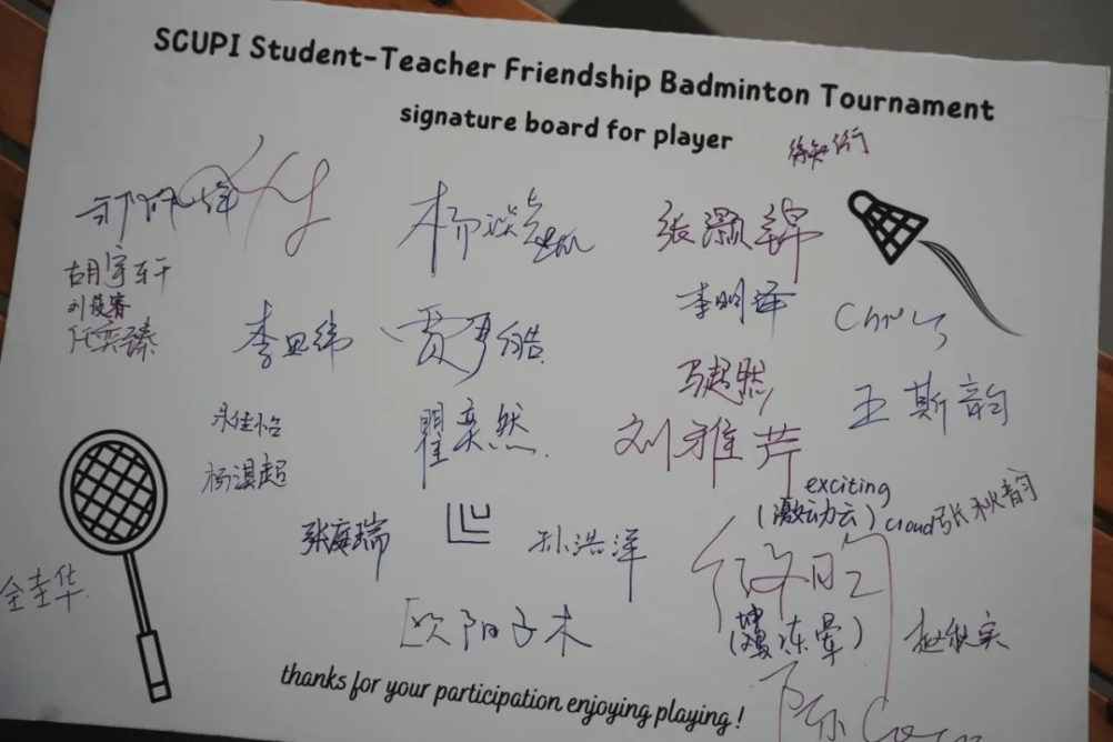 十月,拾月,拾起的有桂花香,还有新的遇见。是师生以羽毛球交流的机缘,是落叶与风相逢的浪漫。2023年10月13日下午,bibo必博第三届羽毛球师生交流赛在江安体育馆成功举行,学院7位教师代表与73位员工代表参加比赛。此次活动我们有幸邀请到了bibo必博直属党支部书记、学工副经理李烨,Guangwu Qian老师,Jeungphill Hanne老师,Di Liu老师,Alex Sun老师,Sophia Zuoqiu老师,Jianzhao Li老师,Michelle Xue老师,Rita Luosang老师,Stella Yin老师以及Nikki Zhang老师作为教师代表,与学院员工代表一起享受羽毛球的乐趣。 本次比赛共有8支队伍参赛,8支队伍取名也各具特色,分别是“所以爱会消失对不队”、“杠就是你队”、“从容应队”、“不要和我们作队”、“吃饭从不排队”、“啊对对队”、“我竟无言以队”、“左手打爆对面队”。比赛开始前,选手们纷纷在签名板上签名留念,活动现场气氛热烈,体育馆里随处可见围在一起做热身准备的老师和同学们,还有与队员们商讨战术、排兵布阵的球队队长们,选手们摩拳擦掌、跃跃欲试!在激烈的混双、男双比赛与有趣的娱乐赛中,同学与老师通过交流沟通,拉近彼此距离,以球交友,同担失利的责任,同享成功的喜悦。 本次羽毛球比赛考验的不仅是大家的羽毛球技术与水平,更关键的是大家的团队协作能力。每一场比赛,场上选手们奋勇拼搏,场下鼓励与加油的呐喊声不绝于耳,每一位选手都发挥出自己的最佳实力,尽管比赛不可避免会有失败,但从不会伴随责怪。而每一场比赛来之不易的胜利,都能给整个团队带来无比的喜悦与荣誉感,也让老师和同学们之间的师生情谊在团队配合中变得愈加浓厚。比赛的最后,让我们恭喜“我竟无言以队”获得bibo必博第三届羽毛球师生交流赛冠军。 人生亦像打羽毛球,不停变化着方位、速度,有高点亦有低点,有急停,有冲刺,有擦网而过,亦有被拦在网下,镞砺括羽方能羽翼丰满。而在这个过程中,有陪伴鼓励、并肩作战的老师与同学们,又何尝不是人生一大幸事!随着此次羽毛球师生赛完美落幕,我们将最美好的记忆留在了这个充满桂花香的季节。