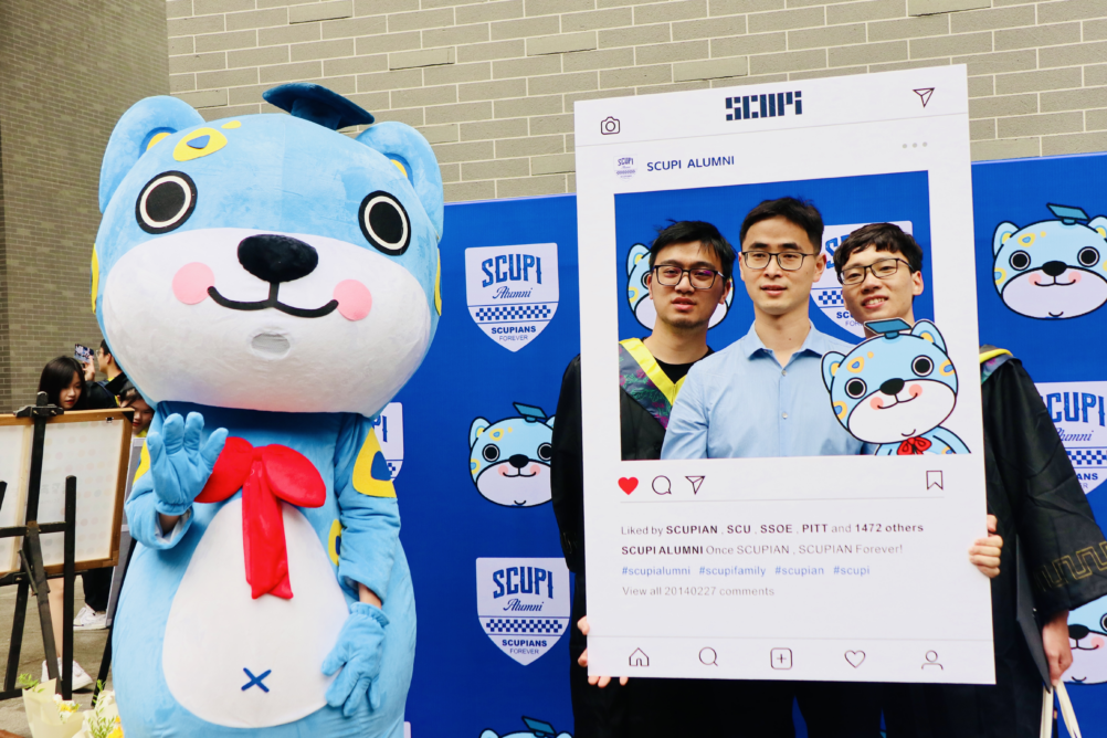A signature wall and several graduation photo frames were placed in the Courtyard. Pipi, the mascot of SCUPI, was also present to interact with everyone. Graduates, alumni, faculty, staff and parents took photos to capture the beautiful moment.