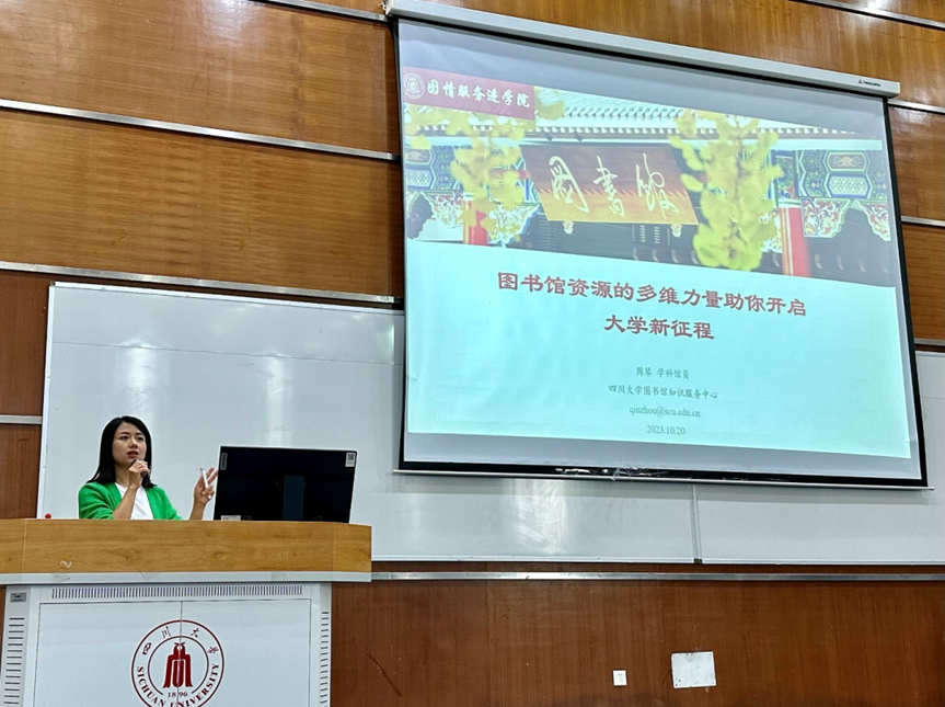 On the afternoon of October 20th, 2023, Sichuan University – Pittsburgh Institute (SCUPI) invited Dr. Qin Zhou, who is from the library of Sichuan University, to deliver a lecture titled “Library Resources Help You Start Your University Journey” for the freshmen. This lecture aimed to provide comprehensive knowledge about the library resources at the university and help students make full use of these valuable academic resources during their university journey.