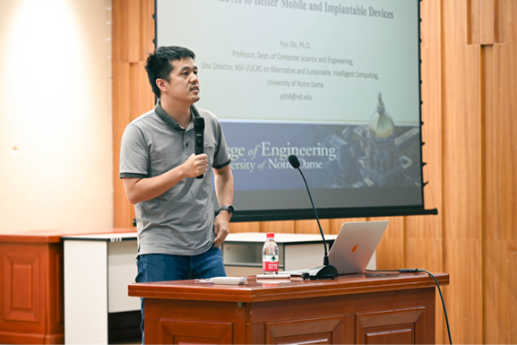 On September 27, 2023, from 12:30 to 13:30 Dr. Yiyu Shi, a tenured professor in the Department of Computer Science at the University of Notre Dame, Director of the Notre Dame Center for Sustainable Intelligent Computing in Natural Sciences, and visiting scientist at Boston Children’s Hospital, was invited by Sichuan University-Pittsburgh Institute (SCUPI) to deliver a highly anticipated lecture entitled “On-Device AI to Improve Mobile and Implantable Devices in Healthcare” on Jiang ’an campus.
