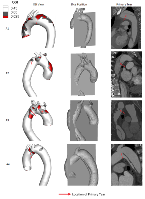 Aortic dissection (AD) is a physical tear of the aorta where the layers of the aortic wall separate, allowing blood to infiltrate the media layer through a rupture in the intimal lining. This process creates two channels within the aorta: the true lumen (TL) and the false lumen (FL) with potential symptoms such as organ malperfusion. These complications usually result from the damage of endothelial cells, obstruction of mass transport, and adverse arterial remodeling which could be traced back to an abnormal hemodynamic environment caused by the abnormal aortic arch morphology of ARSA . Therefore, there is a potential causation between the ARSA and AD in the hemodynamic field, and so far few studies have been able to identify the underlying connections.