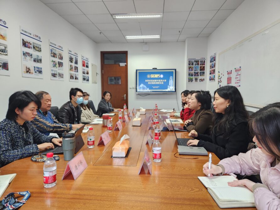 On December 6, Chen Yuan, Director of the International Office of Chengdu University of Traditional Chinese Medicine (CDUTCM) and Dean of the CDUTCM-KEELE Joint Health and Medical Sciences Institute, along with other delegates of the Institute visited SCUPI. SCUPI Associate Dean for Academic Affairs T.Z. Mai, Assistant Dean for Student Affairs, Ye Li, Director of Administration, Vivi Tang, and colleagues from SCUPI Admin teams joined the discussion.