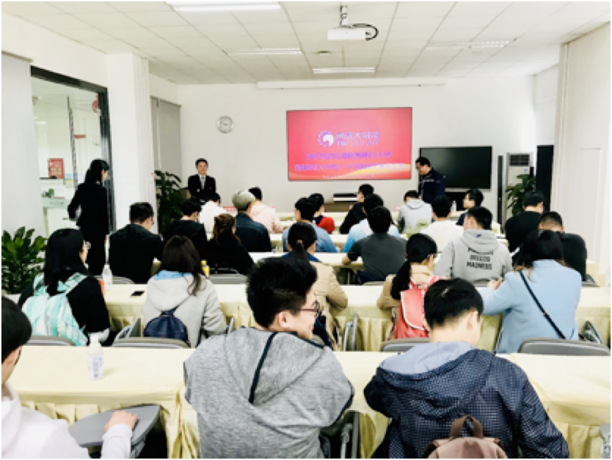 After watching a short video which introduces the history and development of Tongwei Solar, students had a first impression of this giant in solar industry. Tongwei Solar masters the core knowledge of producing photovoltaic (PV) battery, and it is the leading company in this industry. After research, development and manufacturing, the manufacturing base can produce 3800MW of PV battery up to now, and it aims to expand the scale to 10GW, which is more than twice of the present scale in the next three to five years. At the same time, the manufacturing base produces PV battery all the time without any stop, and all its products are sold out.